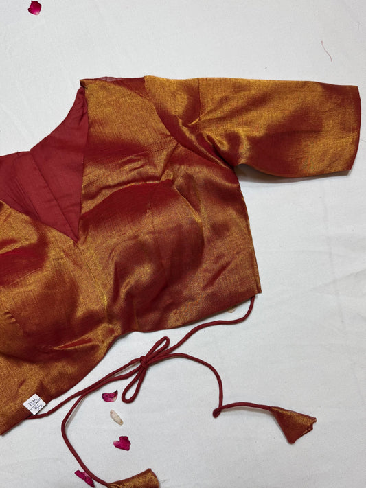 Golden red Tissue zari by cotton saree blouse