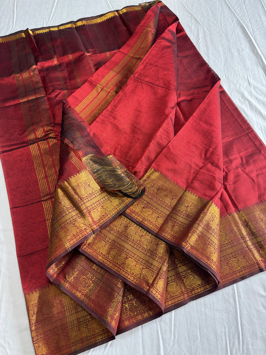 Golden red Tissue zari by cotton saree blouse