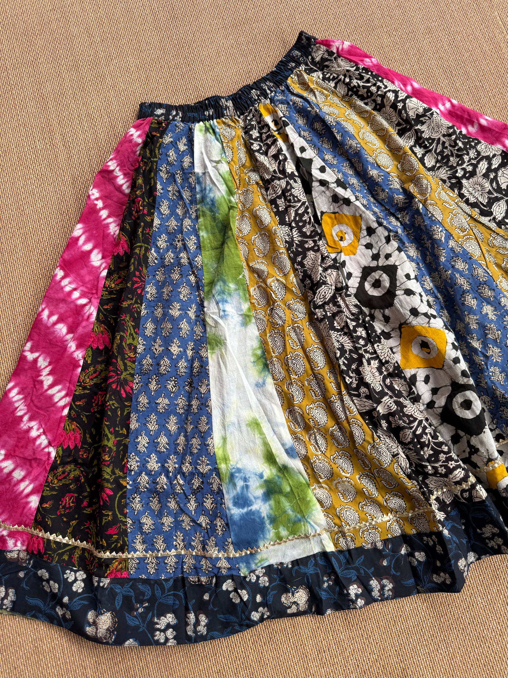 3/4 Patch work Ajrakh flair Skirt