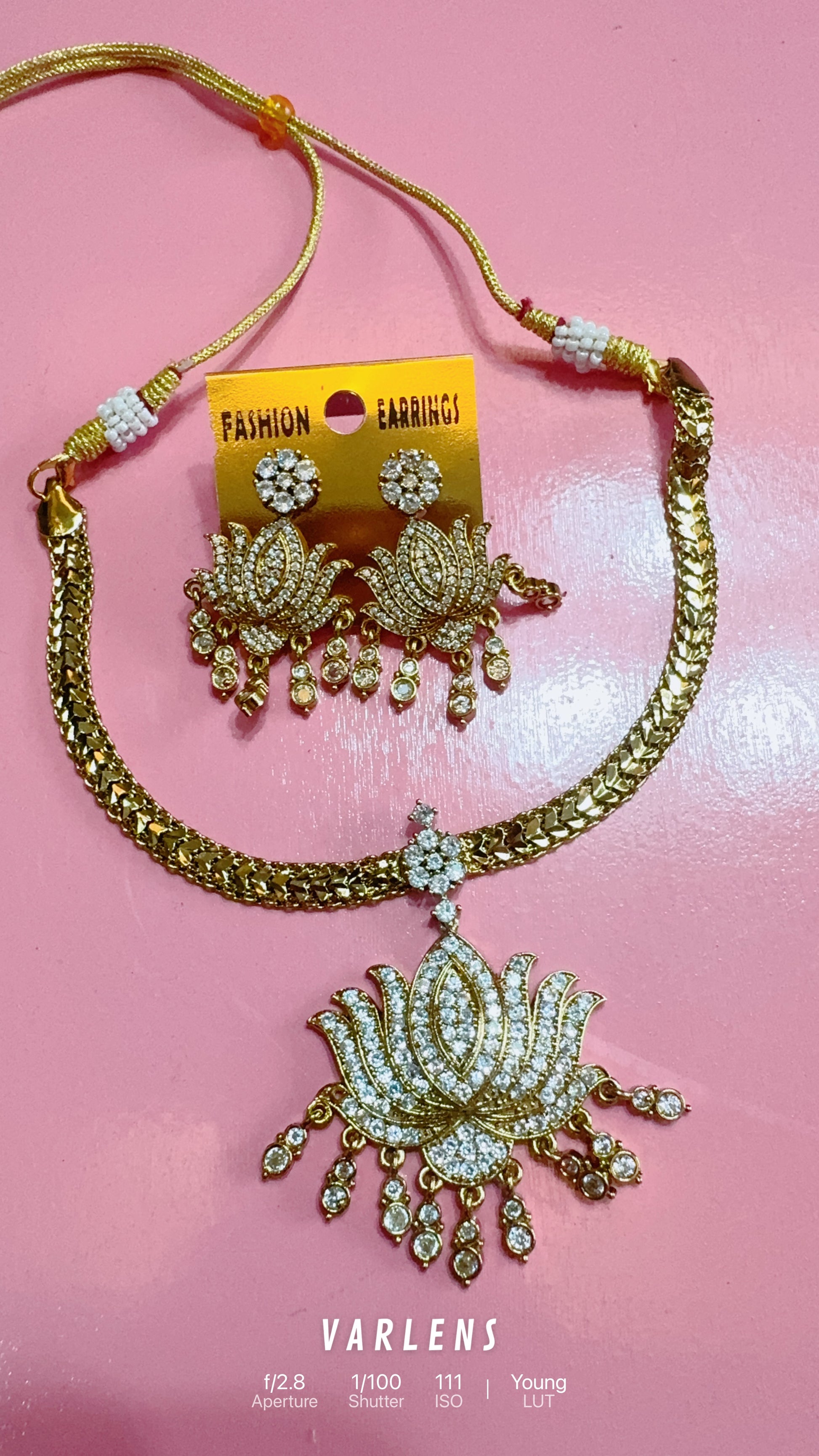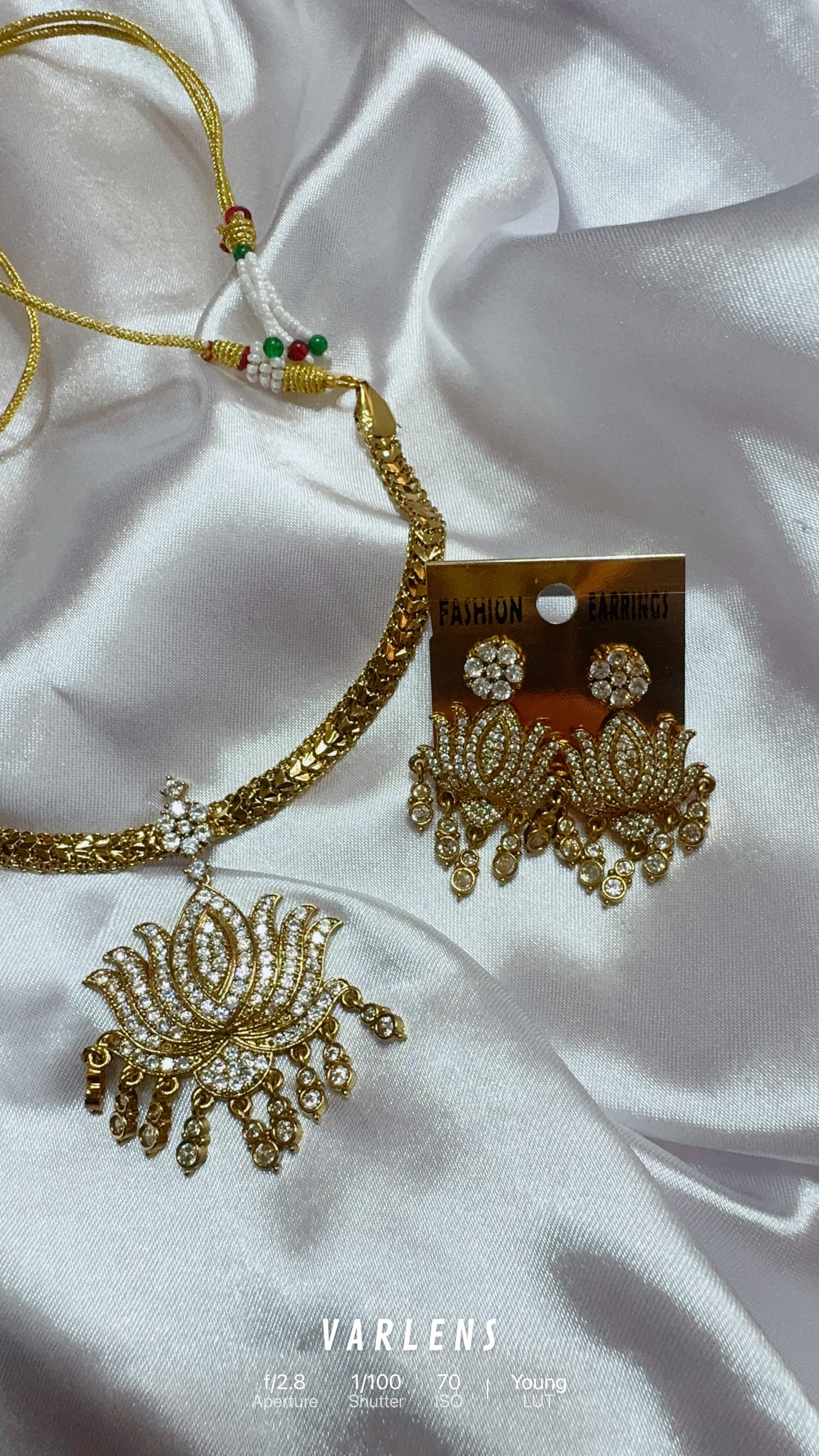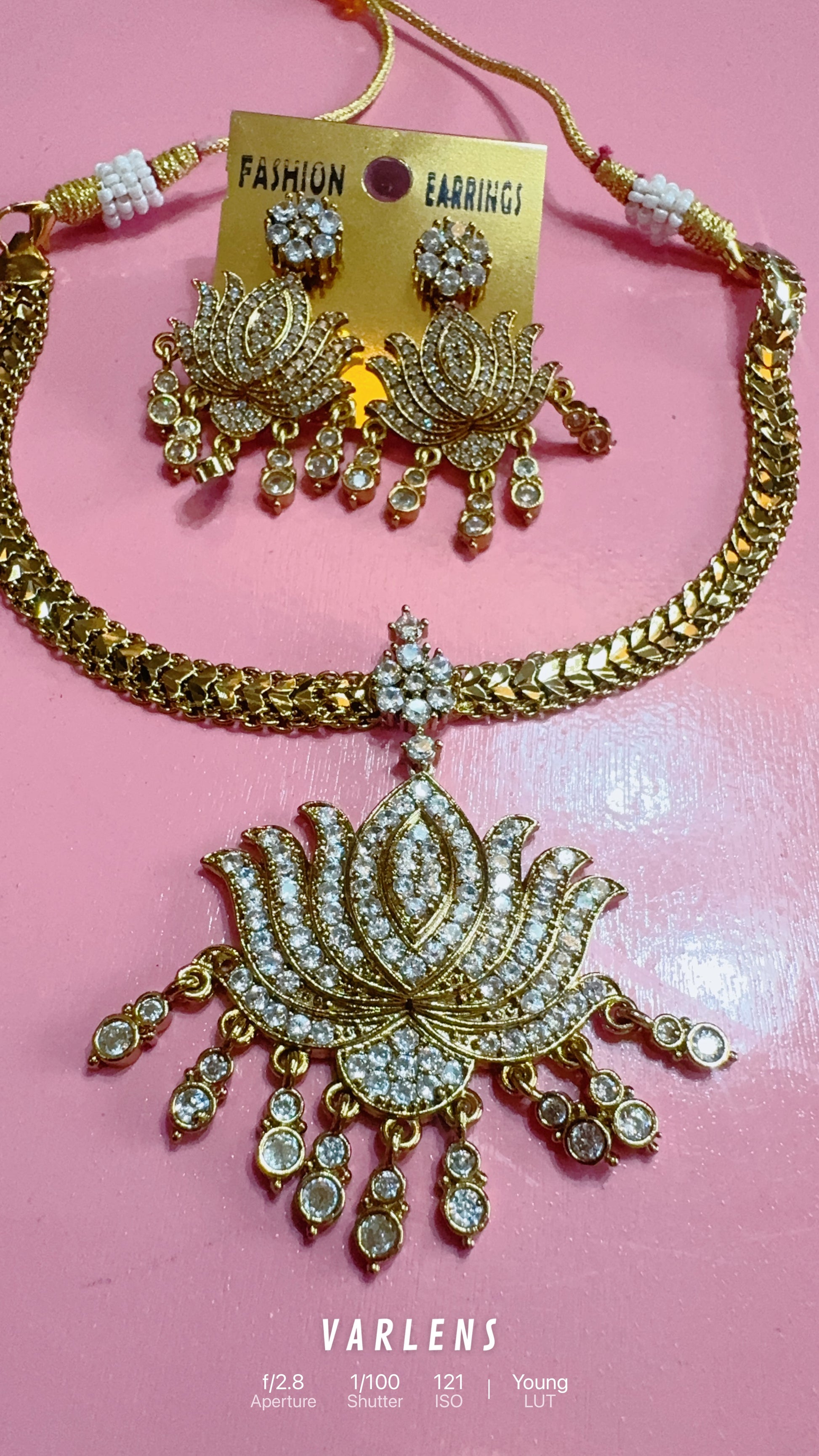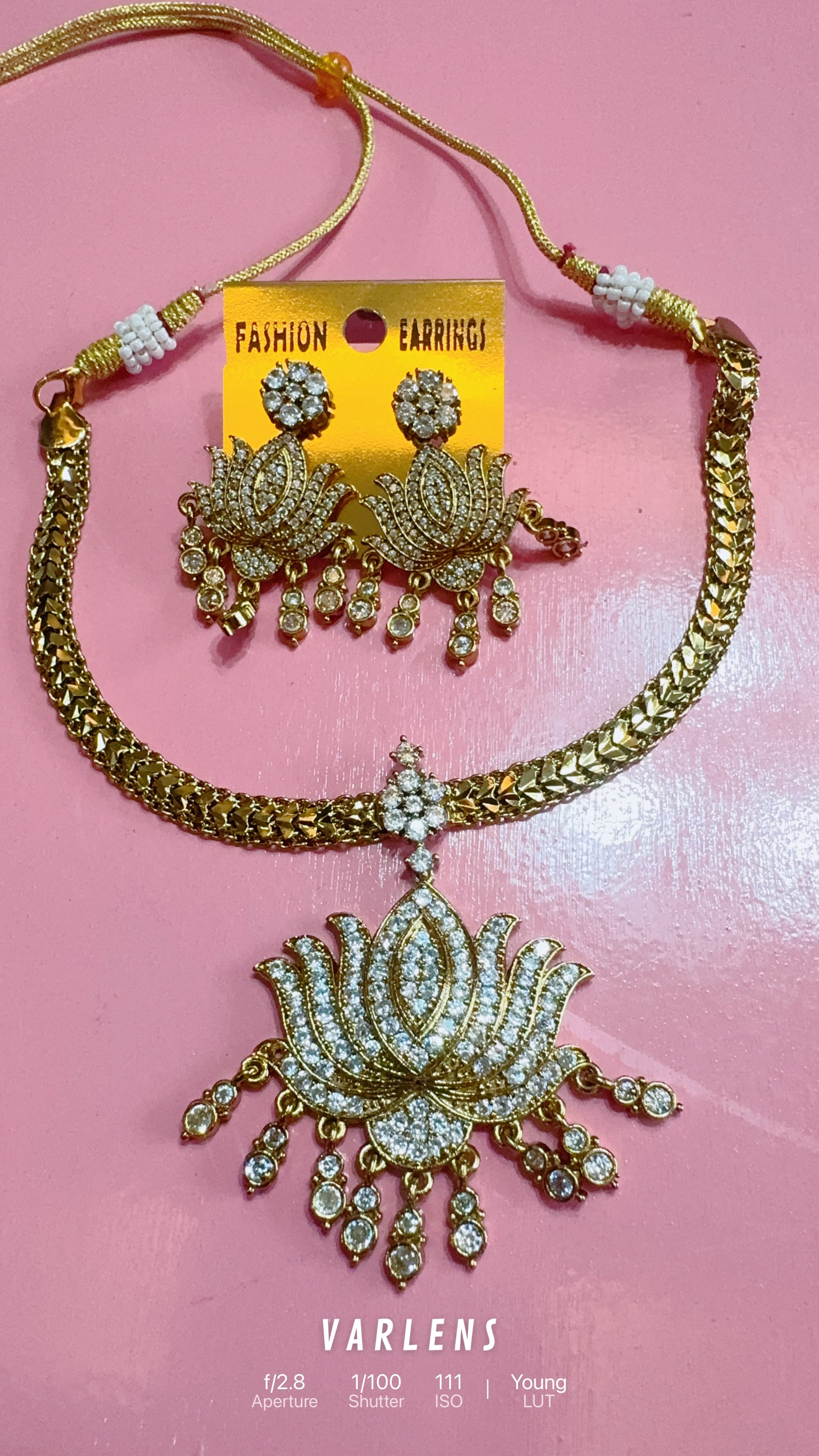 DARK POLISH WITH BRIGHT WHITE STONE LOTUS PENDANT FLEXIBLE CHAIN