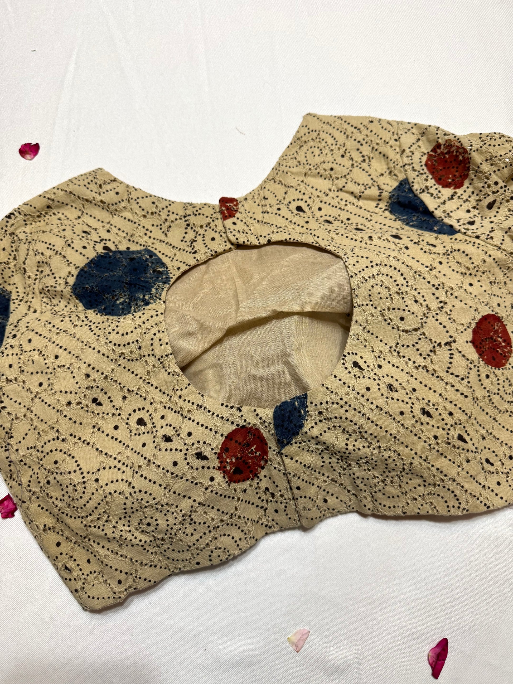 The fabric is a pure ajrakh block with natural vegetable dyes . It is an artisan piece of work .