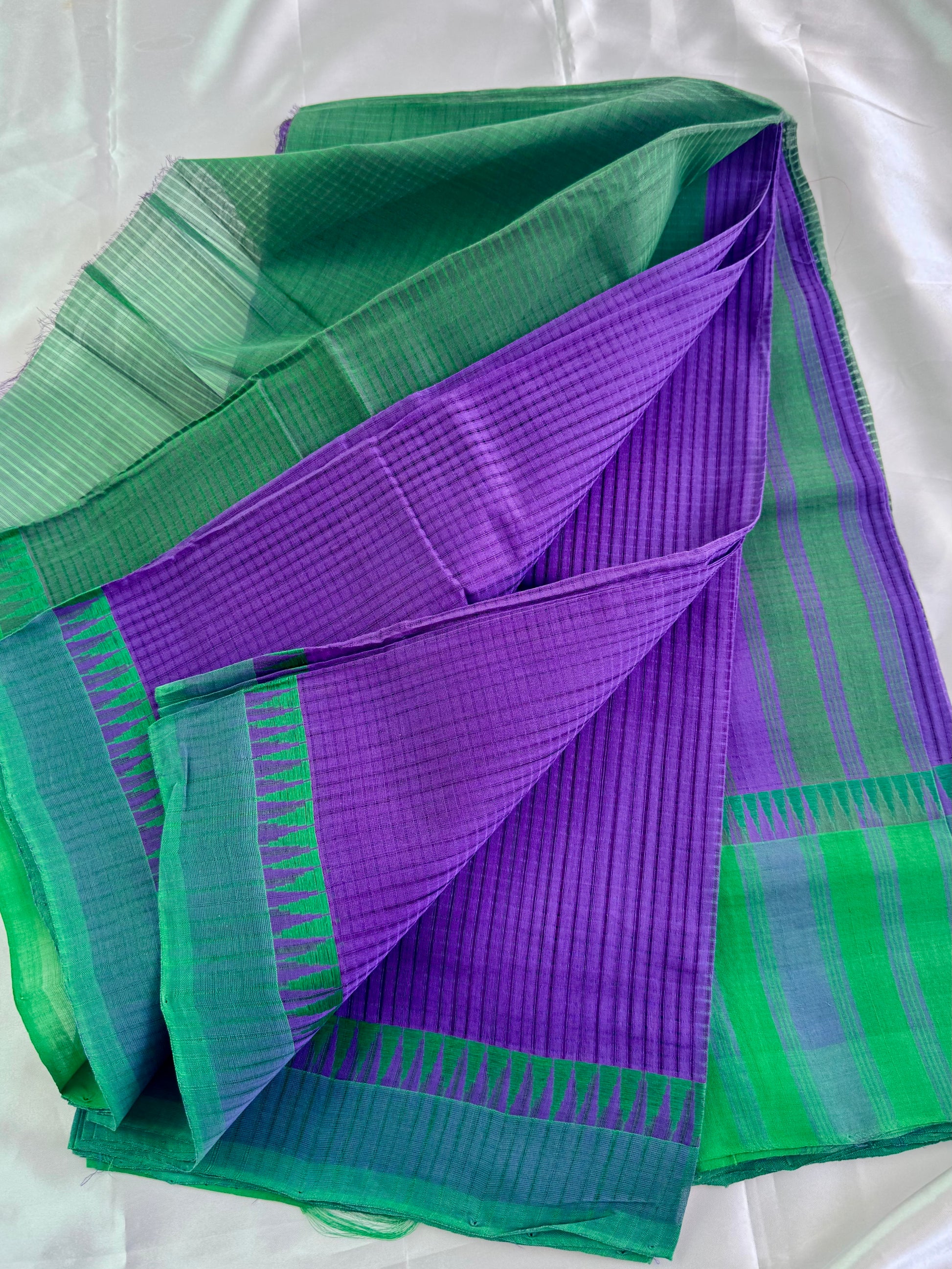 This is a genuine handloom piece.Featuring a missing checked pattern and contrast border and blouse is traditional yet fashionably elegant.
