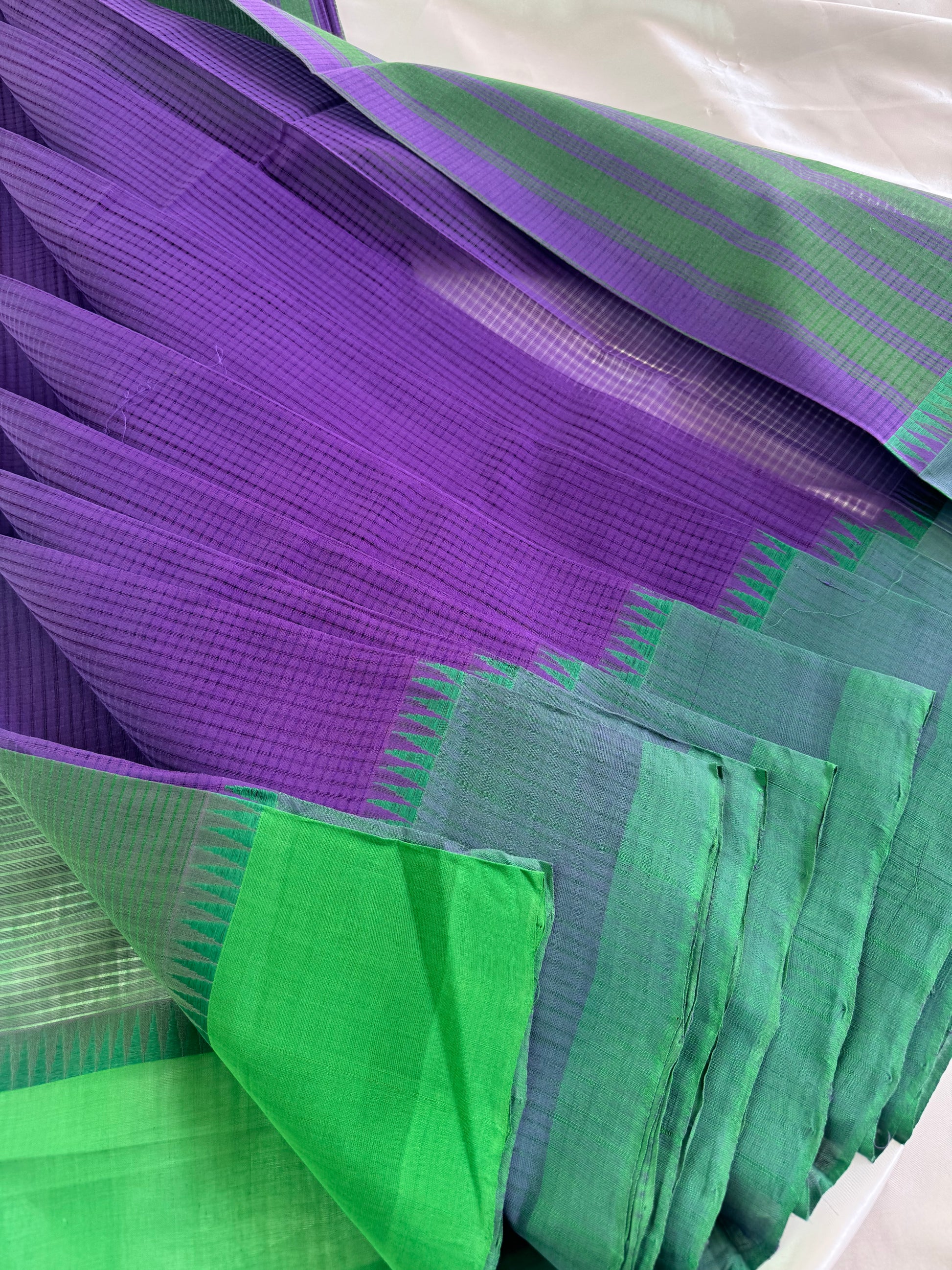 Pure Handloom Mangalagiri missing checks Cotton Saree with contrast Pallu , Blouse and thread Border
