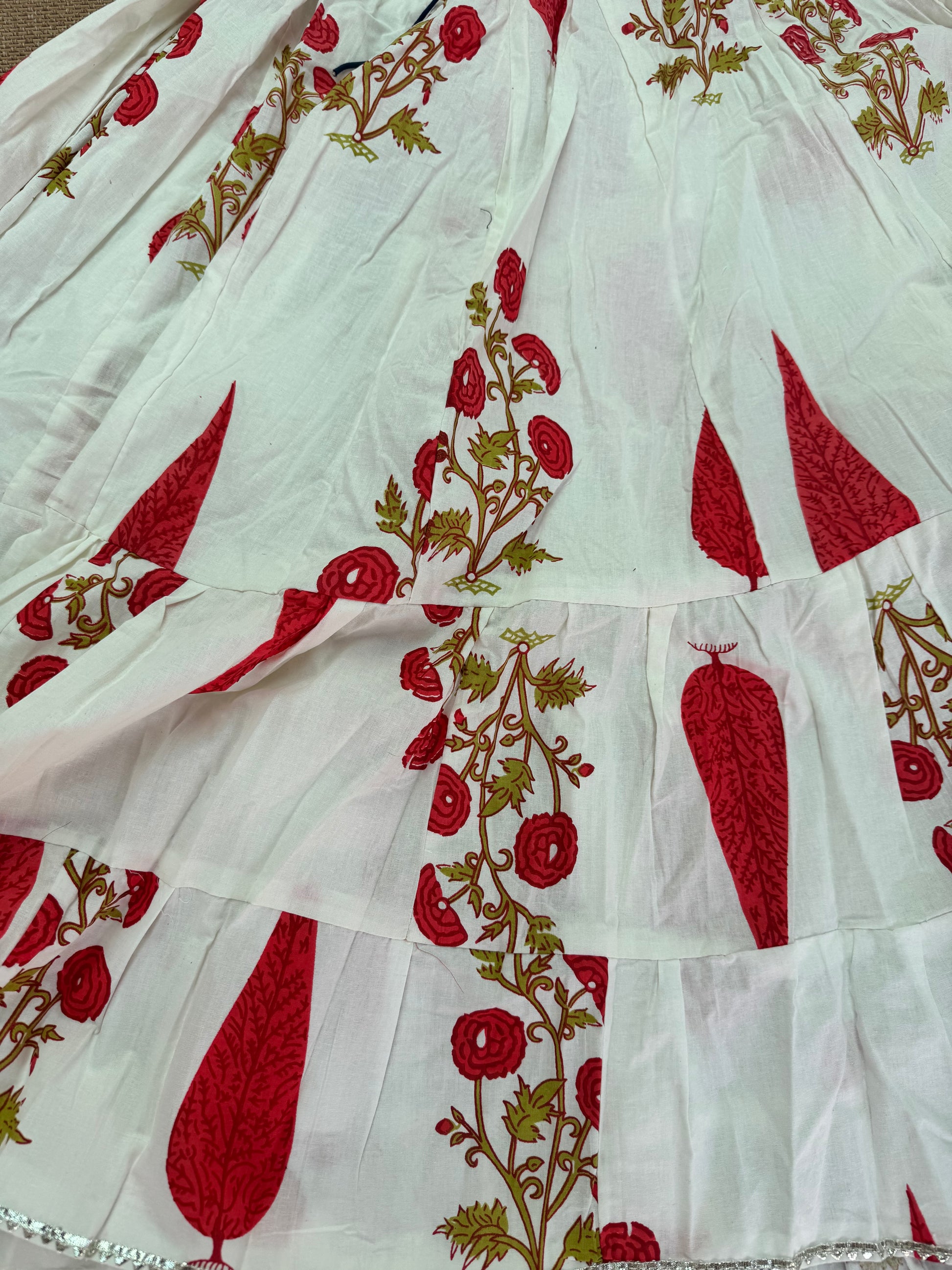 Printed cotton skirt With gathered elastic waistband with a drawstring casing.