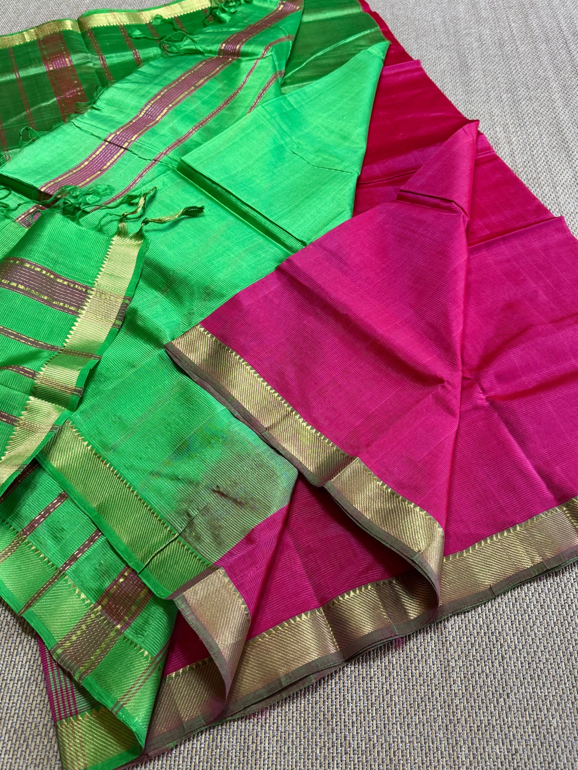 Pure Handloom Mangalagiri Semi pattu by cotton saree with 50/50 K gold border