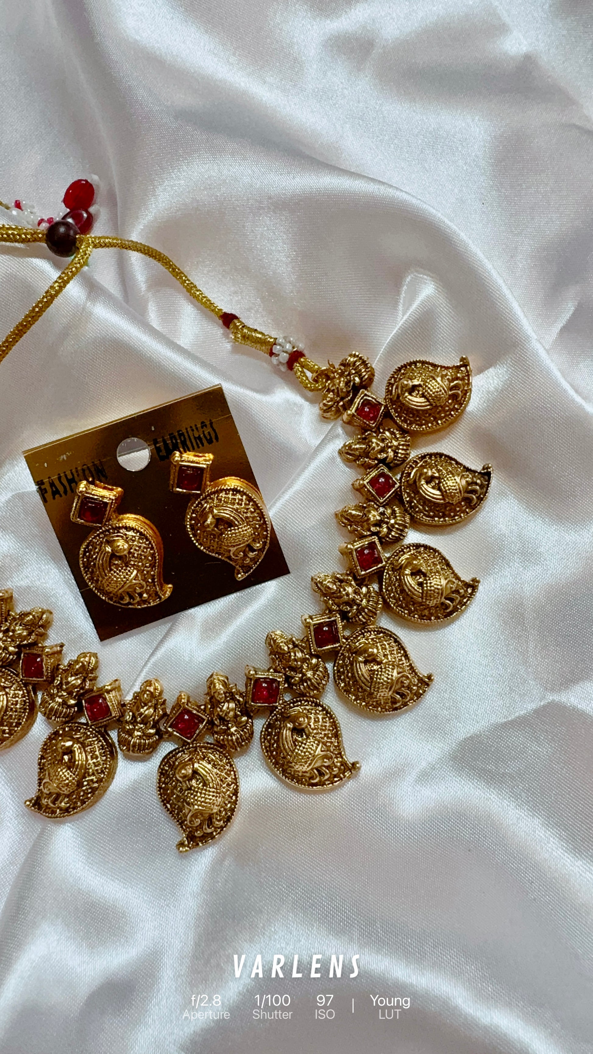 RUBY HOT SELLING MANGO PEACOCK Traditional south indian NORMAL MATTE neckwear with earrings-