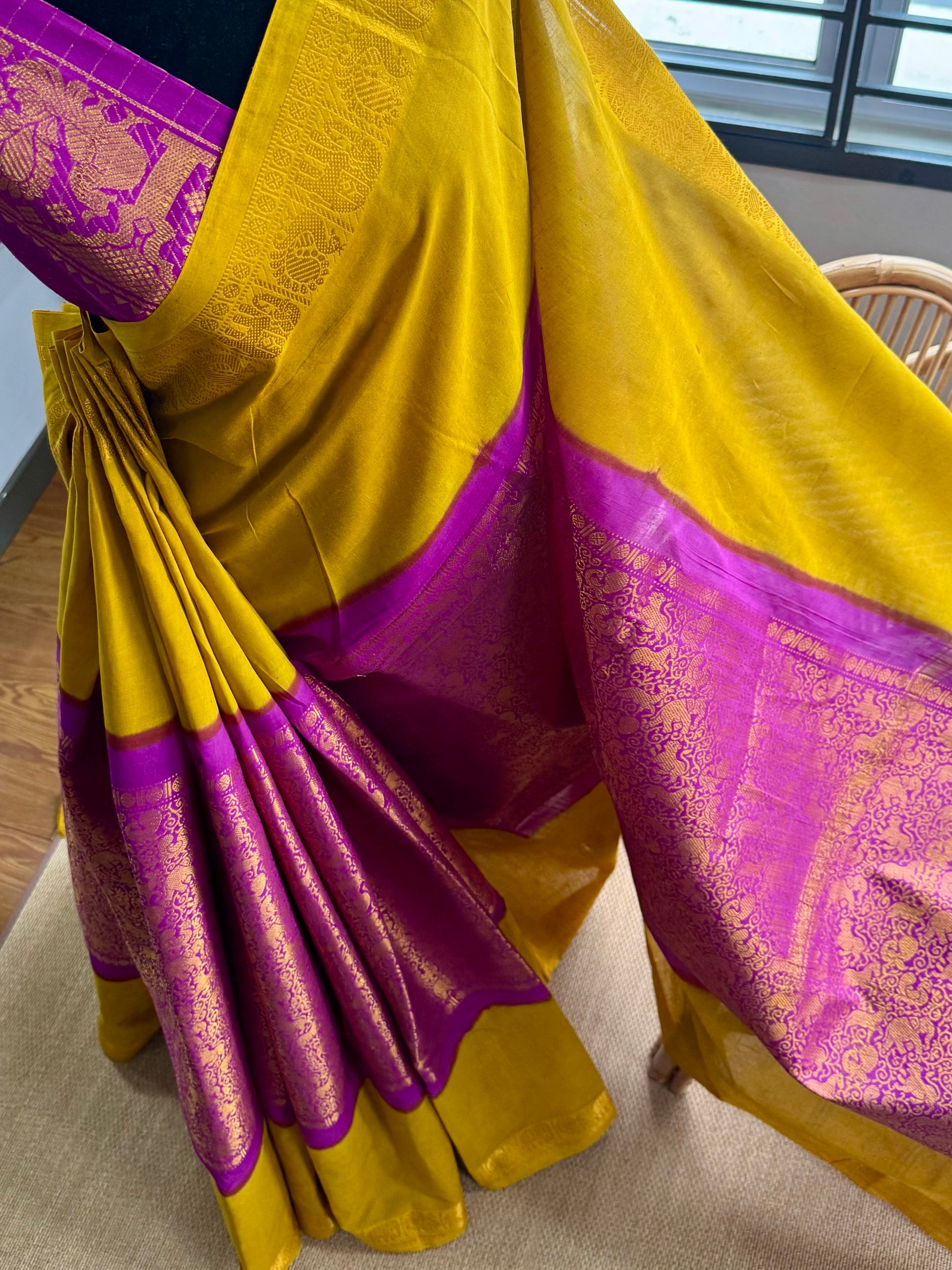 Sungudi sarees are dyed and dried in sand under sunlight. Colour and sand smudges are quite common in sungudi Sarees.These little things are not considered as damages for Replacement or Refund.
