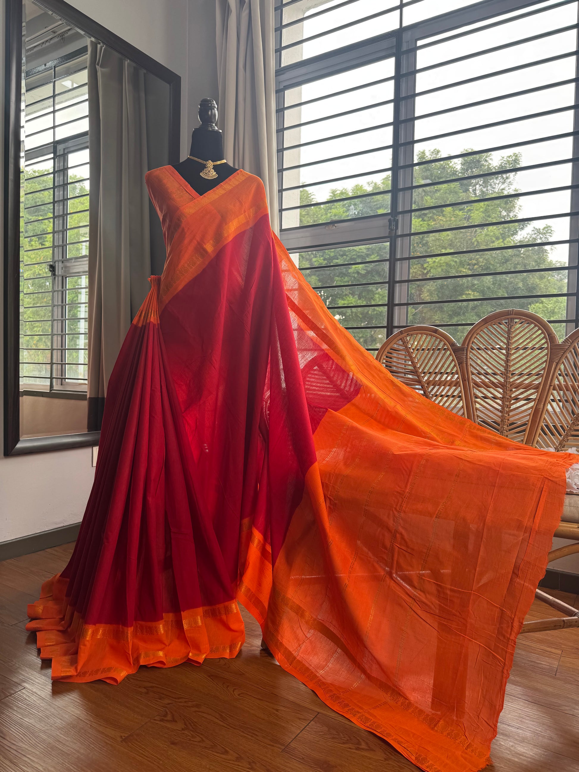 Sungudi sarees are dyed and dried in sand under sunlight. Colour and sand smudges are quite common in sungudi Sarees.These little things are not considered as damages for Replacement or Refund.