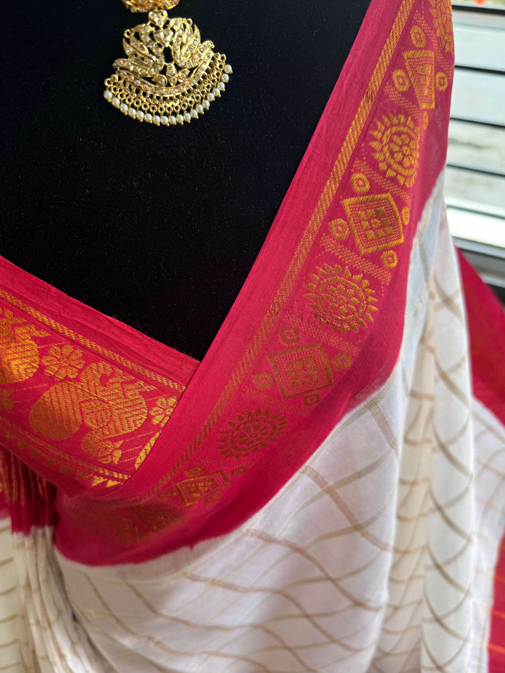 Sungudi sarees are dyed and dried in sand under sunlight. Colour and sand smudges are quite common in sungudi Sarees.These little things are not considered as damages for Replacement or Refund.